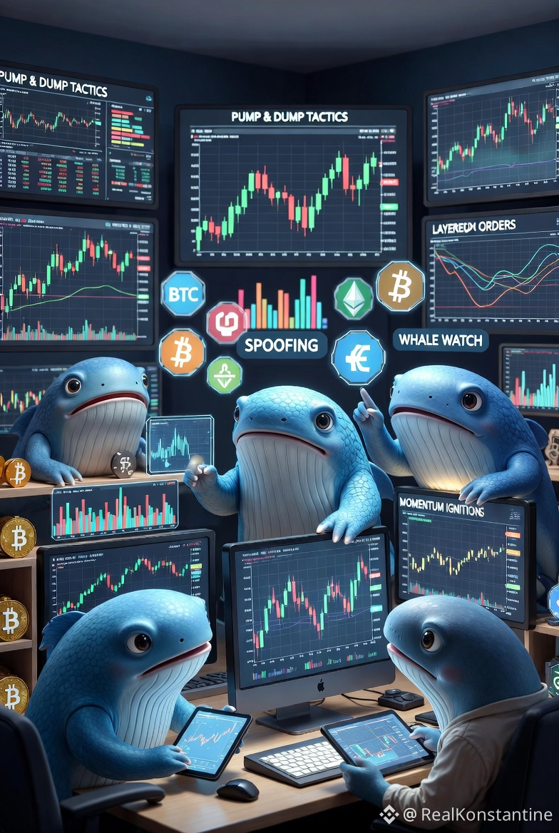 В 2025 году, по Whale Alert и Arkham Intelligence, древние кошельки (спящие 10–14 лет) активировались, продавая миллиарды BTC и усиливая давление на цену. Один кит в сентябре 2025 продал 1176 BTC ($136 млн), сигнализируя волатильность.Крипторынок мал по капитализации (~$3–4 трлн в пике 2025), волатилен и слабо регулируем. Большая сделка кита создаёт дисбаланс: покупка поднимает цену (FOMO), продажа — обвал (FUD). Исследование Федерального резерва Филадельфии (2025) показало: крупные держатели ETH наращивают позиции перед ростом, мелкие — продают в убыток. Волатильность чаще от розницы, но направление — от китов.Тактики манипуляций: от классики до 2025-гоКиты не всегда манипулируют злонамеренно — иногда просто фиксируют прибыль. Но многие тактики намеренны:Pump and Dump — Классика мемкоинов. Киты (или инсайдеры) контролируют 70–90% поставки, хайпят в соцсетях, накачивают цену, затем дампят. Примеры 2025: $TRUMP (пиковый $72, потом обвал из-за отсутствия реального спроса), $LIBRA (связан с политиками, кап $4,4 млрд за минуты, потом крах). NexFundAI (2024–2025) — FBI раскрыло схему с фейковой платформой.