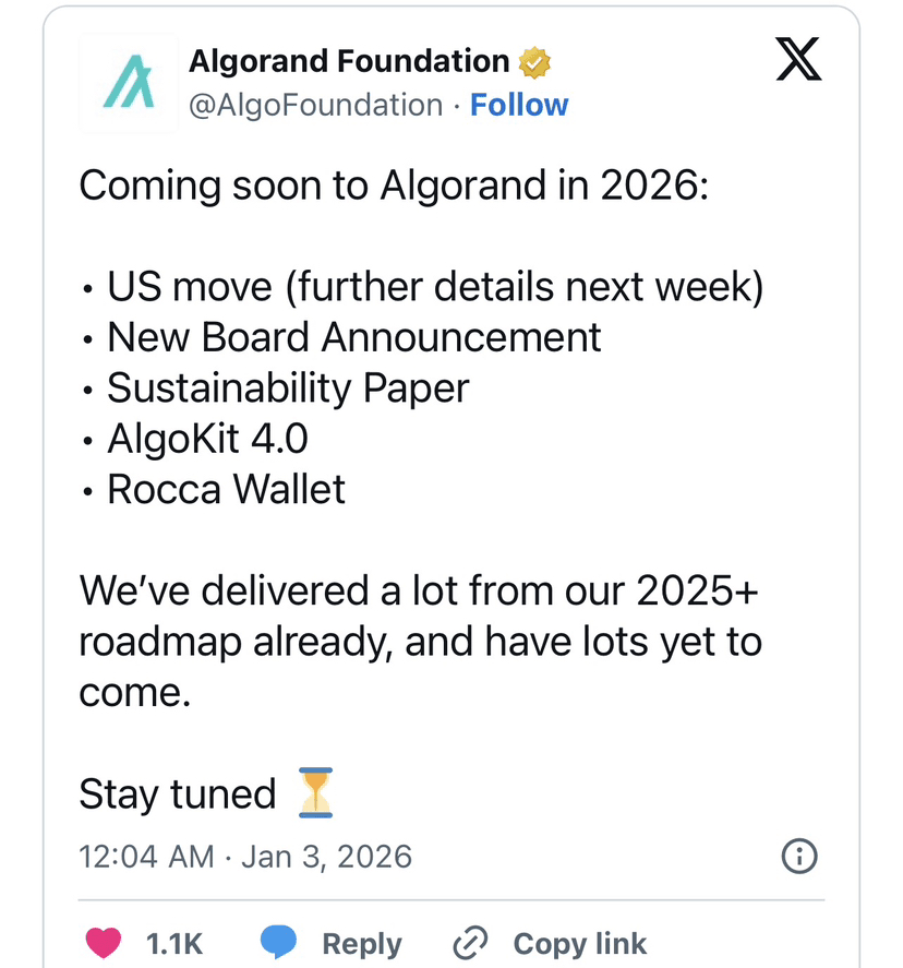 Algorand wprowadzi Rocca Wallet i AlgoKit 4.0 jako część swojej mapy drogowej na 2026 rok.
