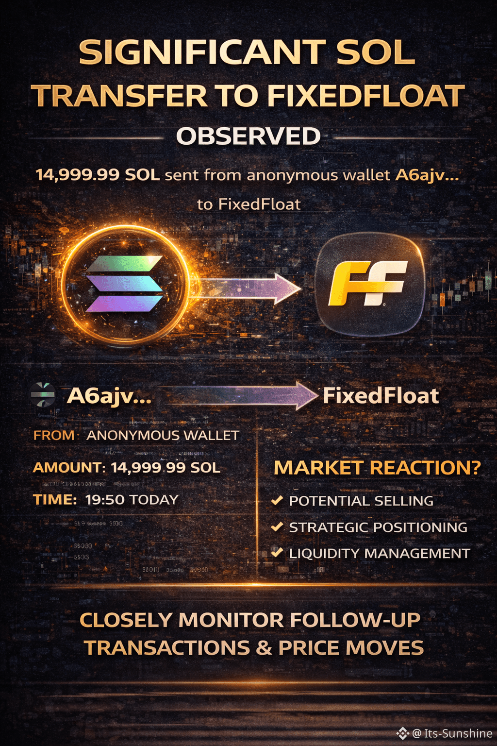 The transfer of nearly 15,000 SOL to FixedFloat is a noteworthy on-chain event, but without additional follow-up transactions or price reaction, its intent remains unclear. As always, traders are advised to monitor subsequent wallet activity and market behavior rather than drawing conclusions from a single transaction alone.
