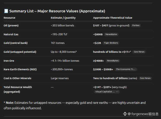 Natural gas and minerals (gold, iron, rare earths, etc.) could add long-term income, but oil remains the dominant revenue source.