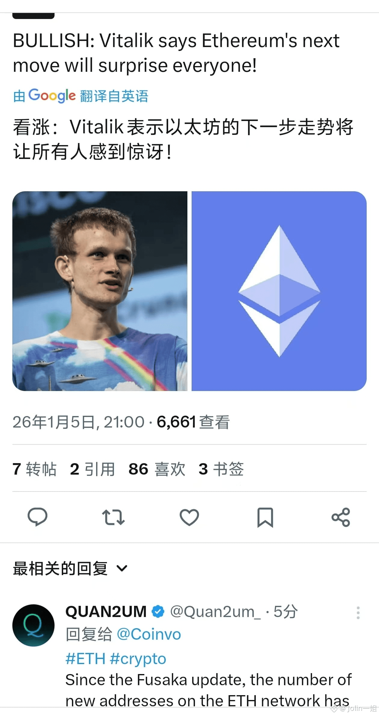 $ETH 以太坊联合创始人Vitalik Buterin在最新访谈中放话:"以太坊的下一步走势,会让所有人感到惊讶!"这位天才少年一手打造的以太坊,已经稳坐区块链第二把交椅,现在还要玩更猛的?