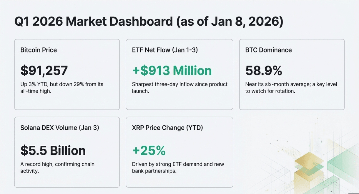 Otwarcie roku 2026 już dostarczyło odpływów wartych miliardy, rekordowych wolumenów Dex na szybko rosnących łańcuchach oraz altcoinów, które biegną, podczas gdy bitcoin łapie oddech. Żadne z tych zjawisk nie odbiega od historycznego rytmu stycznia.