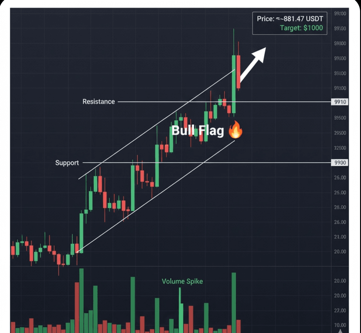 Wzór: Konsolidacja Bull Flag. Na dziennym interwale BNB tworzy klasyczny wzór bull flag. To klasyczny wzór "kontynuacji", który zazwyczaj poprzedza wybuchowy ruch w górę.