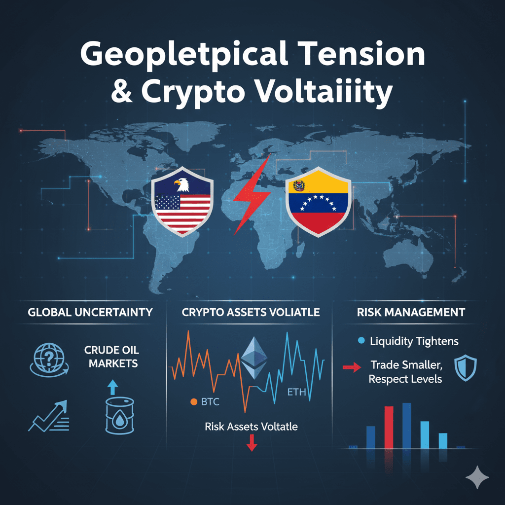 Rynki globalne obecnie reagują na wzrastające ryzyko geopolityczne, ponieważ napięcia między Stanami Zjednoczonymi a Wenezuelą się nasilają. Ostatnie operacje wojskowe USA, które obejmowały aresztowanie prezydenta Wenezueli Nicolása Madura oraz kontrolę nad strategicznymi aktywami ropy naftowej, spowodowały wzrost napięcia na rynkach energii globalnej i wśród inwestorów. Takie nasilenie napięć zwiększyło ryzyko geopolityczne – ważny czynnik wpływający na wahanie rynków w zakresie surowców, akcji i szczególnie kryptowalut. Business Insider+1