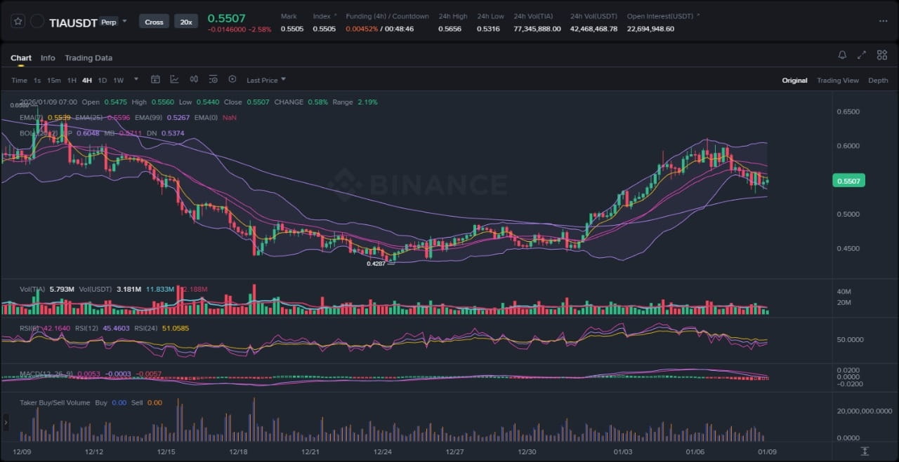 W warunkach niestabilności tokenów blokowych modułowych, TIA Celestia była narażona na presję, a ostatnie wydarzenia pogłębiły sentyment bearishowy i przetestowały kluczowe wsparcia techniczne. Jako starszy analityk rynku kryptowalut na Binance Square, ta analiza analizuje najnowsze ruchy cenowe TIA, łącząc wgląd z załączonym wykresem z trzema najnowszymi nagłówkami wiadomości, aby zaprezentować kompleksowy obraz możliwych kierunków rynku. Inwestorzy działający w tym obszarze muszą być na baczności, ponieważ zbieżność negatywnych wiadomości z technicznymi przełomami może wskazywać na dalsze spadki, podczas gdy jakiekolwiek sygnały odwrócenia mogą wskazywać na możliwości powrotu do średniej.