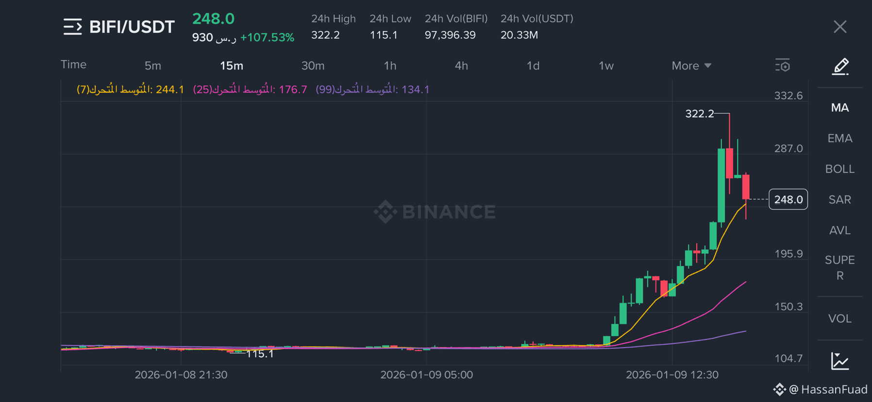 خلال وقت قصير، نجحت BIFI في جذب أنظار السوق بحركة سعرية قوية وغير معتادة ارتفاع سريع، أحجام تداول مرتفعة، وزخم واضح أعاد العملة إلى دائرة الاهتمام من جديد.