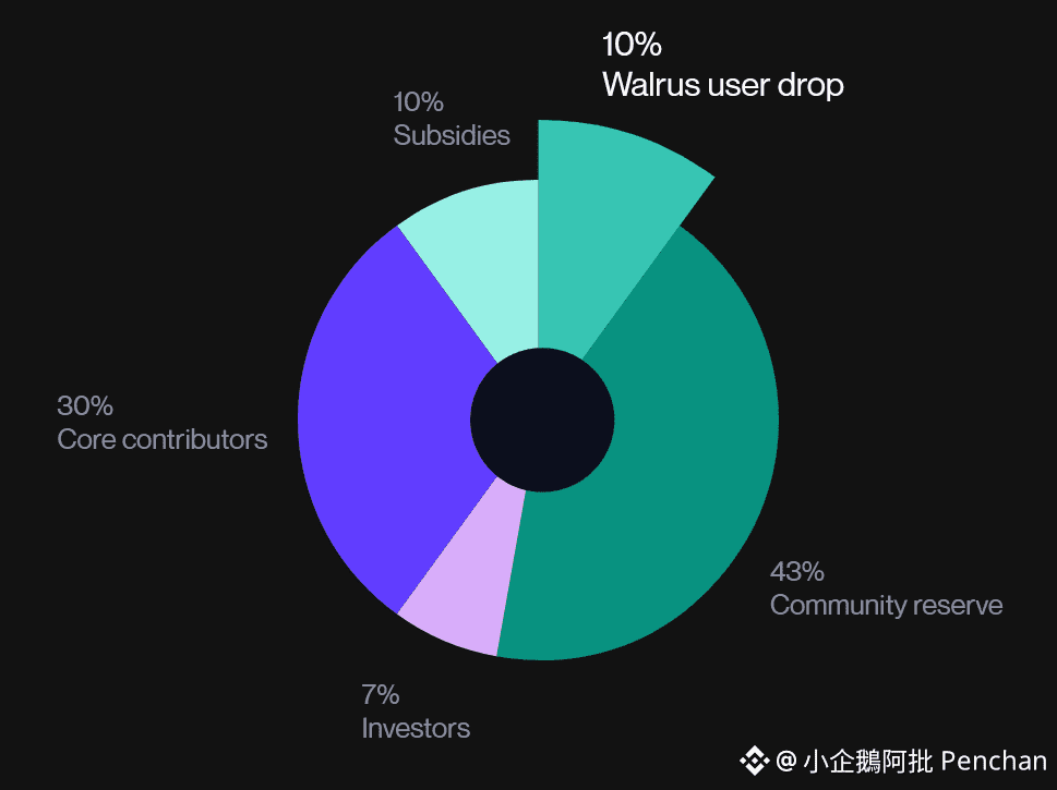 Walrus 代幣經濟學中,最受大家關注的是空投份額佔了 10%。目前 WAL 已空投了 4% 給予 Sui 用戶,這部分的規則迄今未公佈。根據小企鵝的了解是包含 NS 域名持有者、持續交互的用戶以及部分 NFT 持有者都有收到不等的代幣。