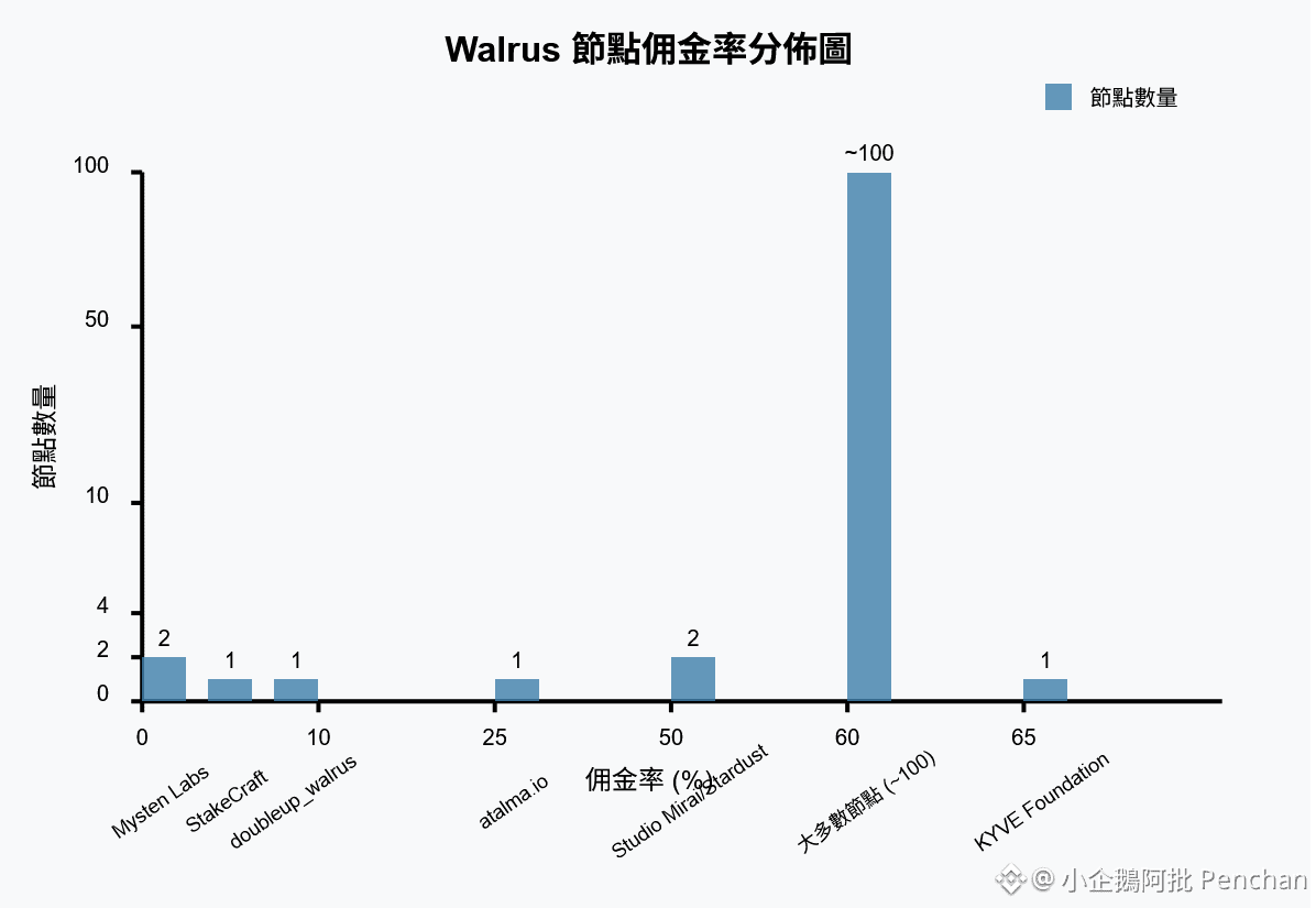 2025 年 3 月 Walrus 節點數量與佣金率的分佈圖