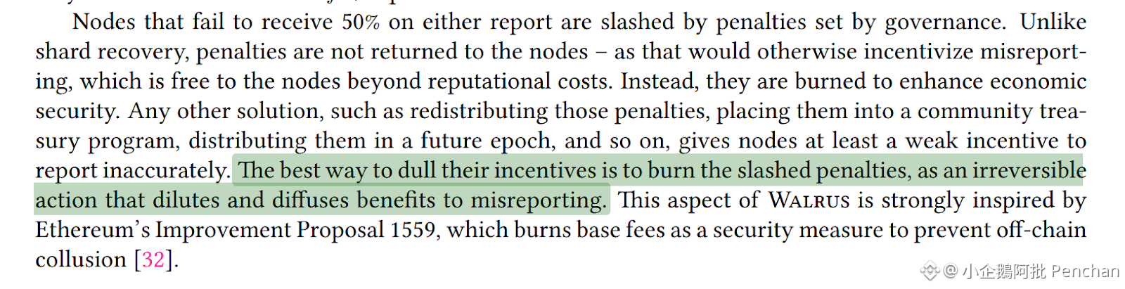此外,小企鵝也有留意到 Walrus 代幣經濟學中兼具了通貨膨脹與緊縮的機制。在通貨膨脹方面,系統提供質押獎勵,讓節點驗證者獲得 WAL 代幣作為回報。這種激勵機制可以確保了網路參與者積極貢獻資源來維持系統的穩定運行,用戶質押代幣減少流通量。