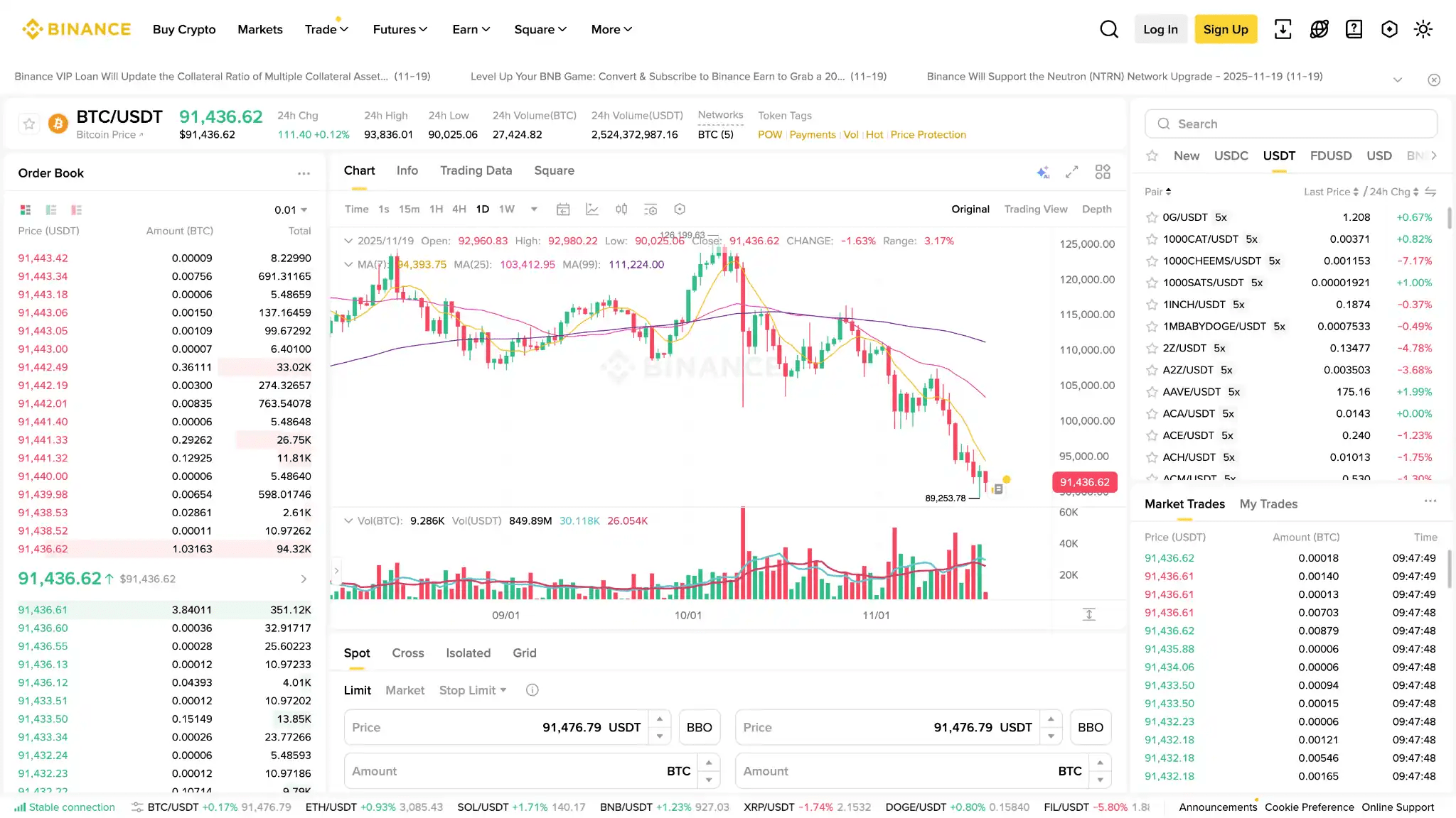 Binance wciąż jest największym na świecie exchange'em kryptowalut pod względem objętości obrotów i liczby użytkowników (ponad 300 milionów użytkowników według przeglądu końcoworocznego z 2025 roku). Oferuje: