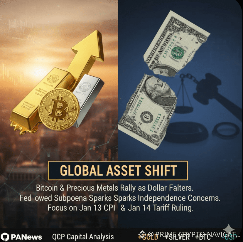 According to PANews, QCP Capital's analysis indicates that Bitcoin, gold, and silver experienced simultaneous gains during the Asian market's early trading hours, driven by a significant weakening of the U.S. dollar. The market perceives the U.S. Department of Justice's subpoena and criminal charges threat against the Federal Reserve as retaliation against its policy independence.