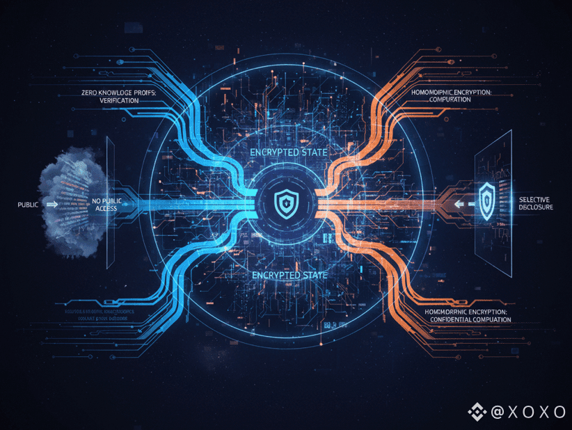 Privacy on Dusk is not achieved by hiding transactions from the network. It is achieved by allowing the network to verify transactions without seeing their contents. Zero knowledge proofs prove that the rules were followed. Homomorphic encryption allows balances to be updated without revealing them. The blockchain remains secure and verifiable, but it no longer functions as a global surveillance system.