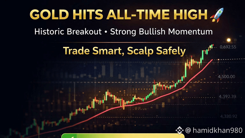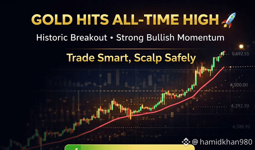 گولڈ (XAU / XAUTUSDT) نے آج آل ٹائم ہائی بنا کر تاریخ کا نیا باب رقم کر دیا ہے۔ عالمی مالیاتی منڈیوں میں یہ ایک غیر معمولی دن ہے جہاں سونے نے تمام پرانے ریکارڈ توڑتے ہوئے سرمایہ کاروں کے اعتماد کو ایک بار پھر ثابت کر دیا۔ موجودہ عالمی معاشی غیر یقینی صورتحال، جیو پولیٹیکل ٹینشن، ڈالر کی کمزوری اور محفوظ سرمایہ کاری (Safe Haven) کی بڑھتی ہوئی طلب نے گولڈ کو مسلسل اوپر کی طرف دھکیلا، اور آج ہم نے اس کا واضح نتیجہ آل ٹائم ہائی کی صورت میں دیکھا۔
