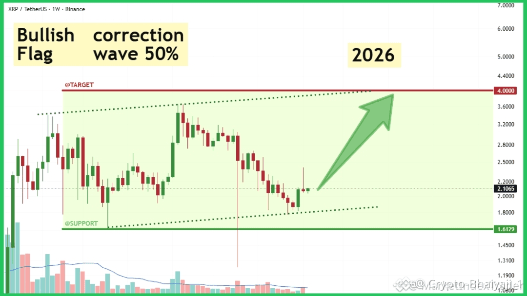 XRP is consolidating inside a classic Bullish Flag after a strong impulsive rally. Price successfully retested and bounced from the lower channel support near $1.61, confirming buyers are in control.