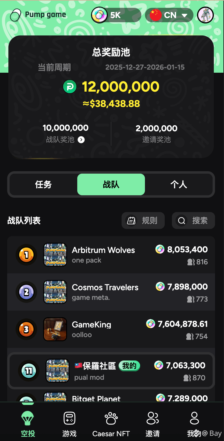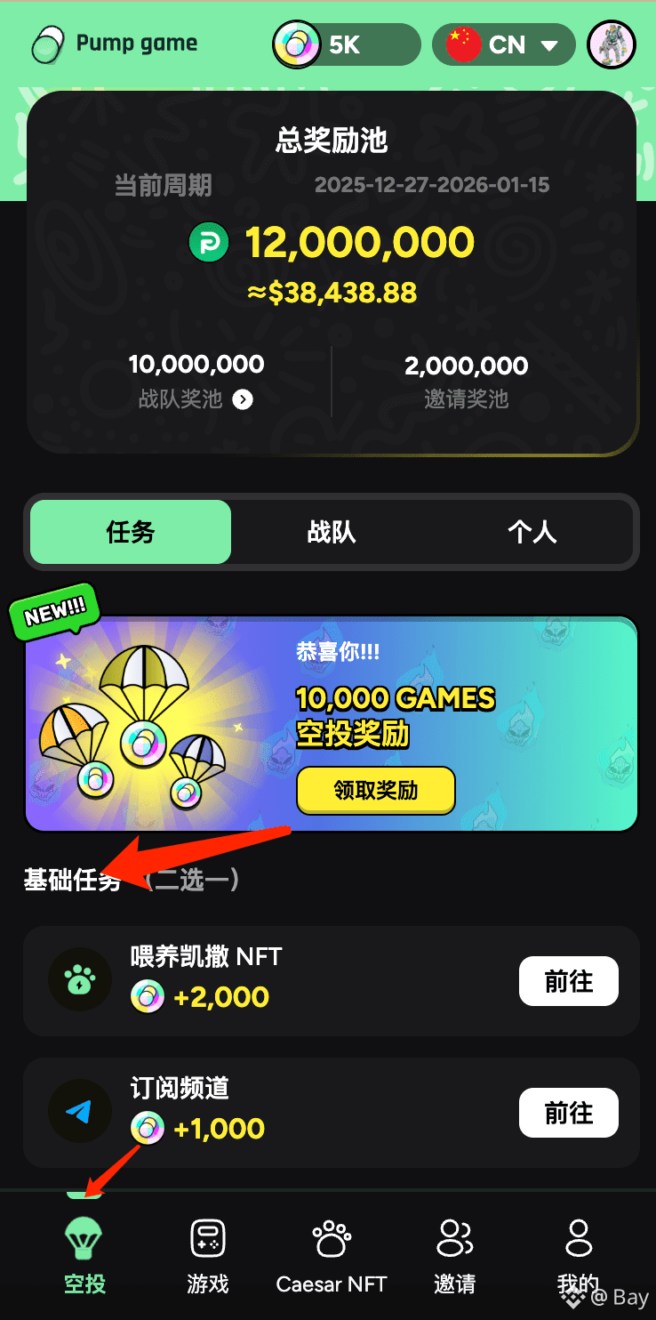 只要完成指定任务,就能获得 $GAMES 积分,用于后续 个人 & 战队空投分配