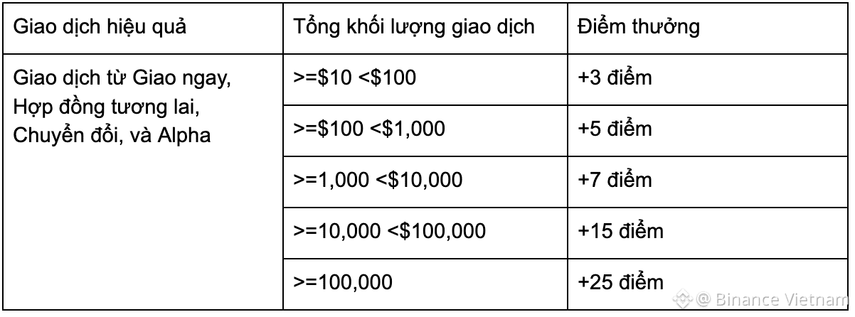Bạn có thể nhận tối đa 25 điểm mỗi ngày cho mỗi dự án từ các giao dịch hiệu quả bạn thực hiện trên sàn Binance (không bao gồm ví).