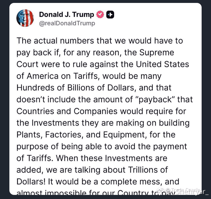 Trump says reversing tariffs could expose the U.S. to hundreds of billions — even trillions — of dollars in liabilities. A shock of that scale wouldn’t just hit markets; it could weaken America’s long-term economic and global position.
