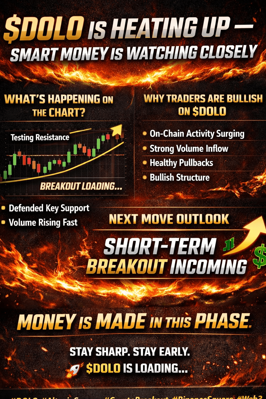 Jeśli obecny momentum się utrzyma, $DOLO jest ustawiona na krótkoterminowe wybicie, a następnie pchnięcie w kierunku wyższych stref płynności. Gdy to się stanie, traderzy FOMO wpadną w panikę — ale do tego czasu, wcześniejsi nabywcy będą już na plusie.