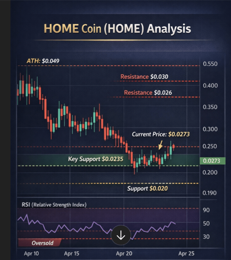Coin HOME chilluje w swojej strefie wsparcia dzisiaj. Jeśli kupujący będą się angażować, możemy zobaczyć czysty odbicie. Jeśli nie, może spaść nieco więcej. Trzymaj oczy na poziomie $0.020 — tam zaczyna się prawdziwa gra.