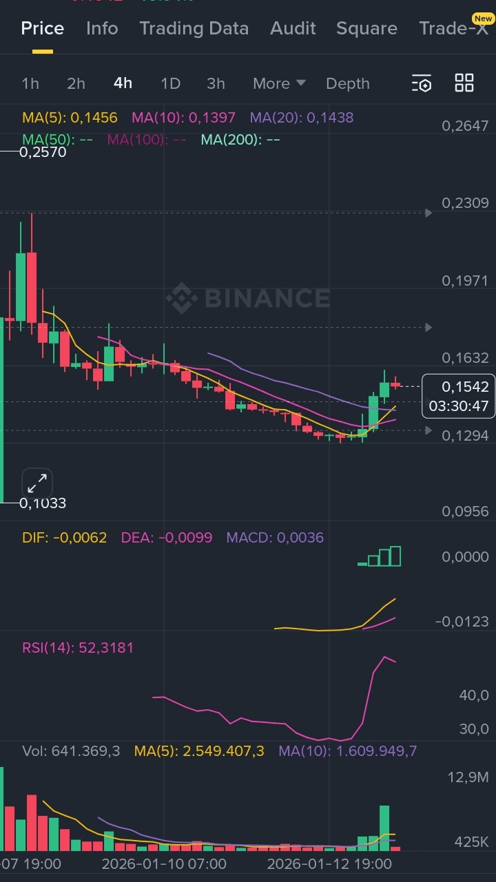 Strefa Wejścia (Kup na Słabości): 0.1460 – 0.1530 (Idealne wejście blisko wsparcia MA10 podczas zdrowej korekty).