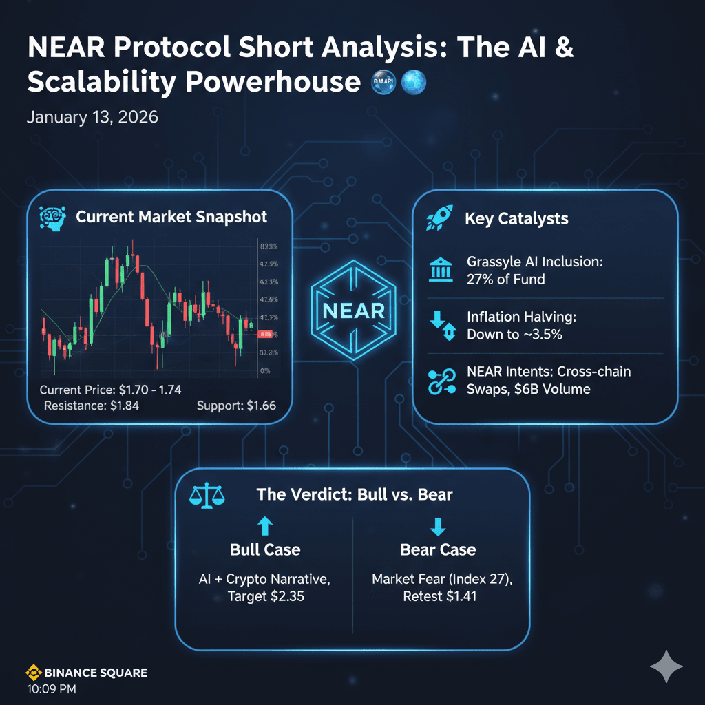 Od 13 stycznia 2026 roku NEAR Protocol budzi zainteresowanie, ponieważ staje się czymś więcej niż tylko "szybką blockchainą". Przeprowadził rebranding i został oficjalnie nazwany "Layer-1 zorientowanym na AI", a rynek zaczyna to zauważać.