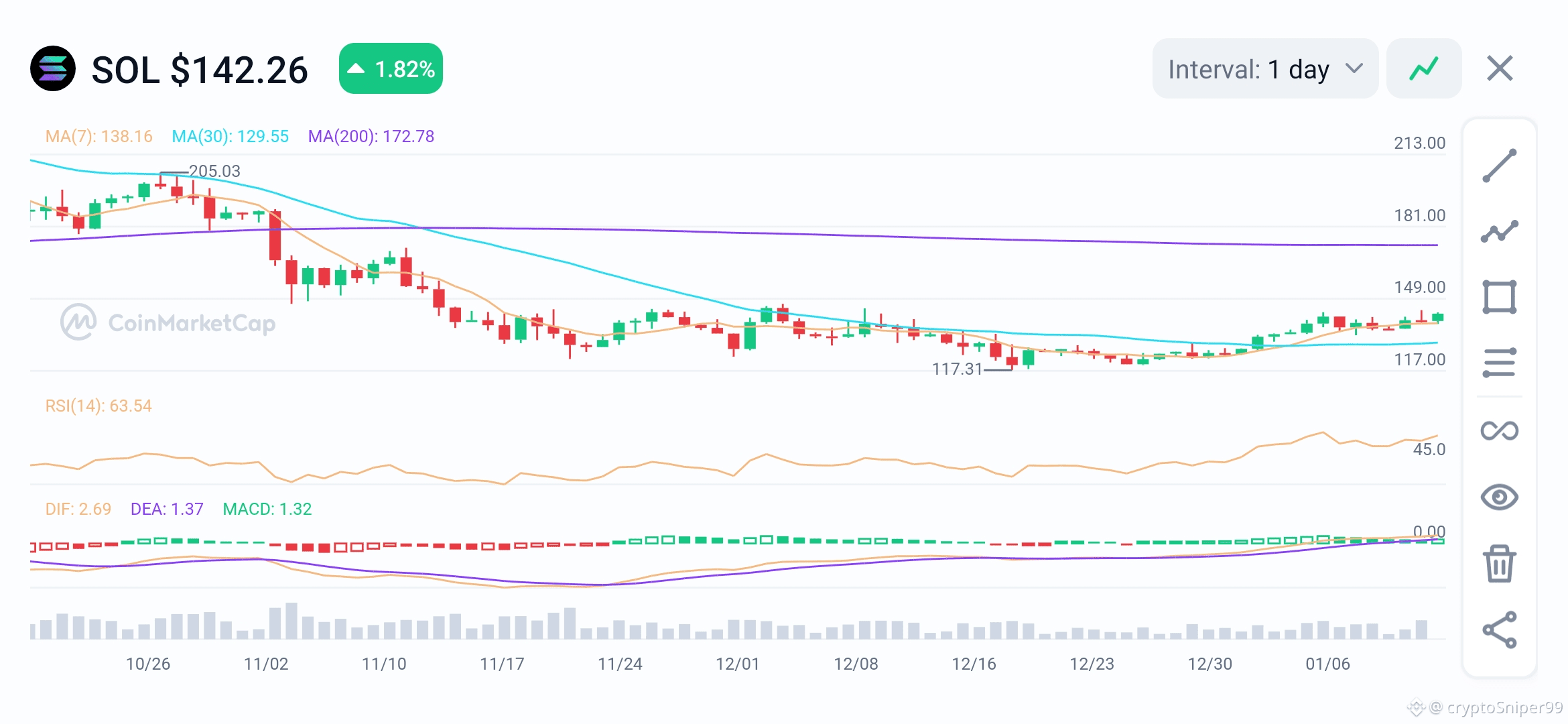 As of January 13, 2026, Solana (SOL) is trading at approximately $139.21, demonstrating a resilient recovery with a 2.46% gain in the last 24 hours. The token has recently found strong support in the $134–$136 demand zone, attempting to break through significant overhead resistance near the $145–$150 range.
