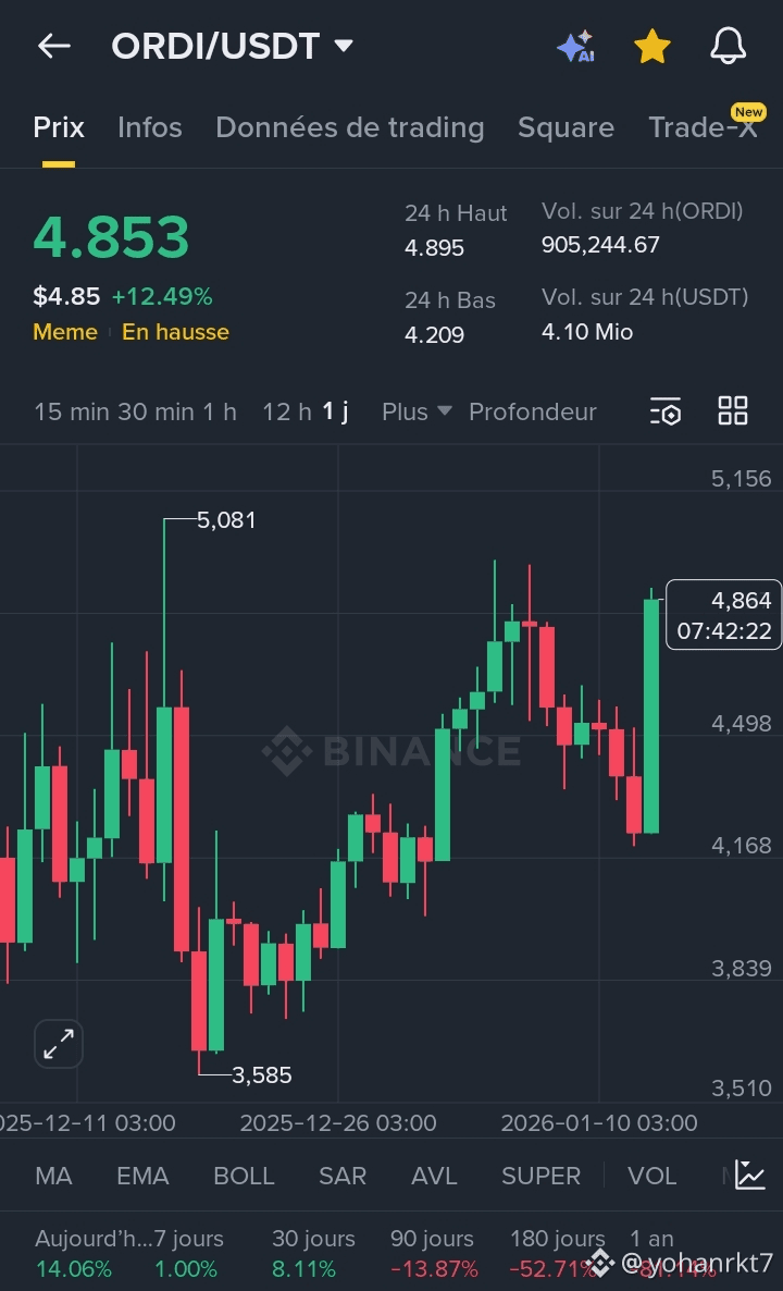 En ce début janvier 2026, alors que le marché crypto global cherche une direction claire entre accumulation institutionnelle et volatilité, ORDI ($ORDI) confirme sa position de pilier indispensable de l'écosystème Bitcoin. Premier jeton inscrit via le protocole Ordinals, il reste le baromètre du sentiment pour toute la classe d'actifs BRC-20.