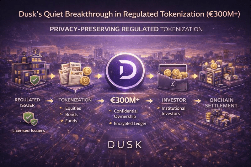 W ciągu ostatnich kilku lat rozmowa na temat tokenizacji stopniowo przechodziła od teorii do rzeczywistości. To, co zaczęło się eksperymentami z cyfrowymi reprezentacjami aktywów, przekształciło się w coś znacznie istotniejszego. Dzisiaj setki milionów euro wartości regulowanych instrumentów finansowych są emitowane, przechowywane i handlowane w formie tokenizowanej. W tym środowisku @Dusk has cicho stało się jednym z najbardziej wiarygodnych platform do przekształcania rzeczywistych papierów wartościowych w aktywa na łańcuchu. Fakt, że więcej niż 300 milionów euro wartości tokenizowanych papierów wartościowych jest powiązanych z ekosystemem Dusk, to nie liczba marketingowa. Odbija głębszą zmianę w sposób działania rynków kapitałowych.
