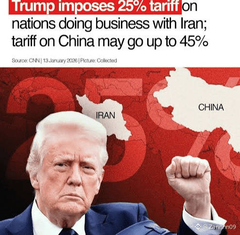 President Trump announced that any nation trading with Iran must pay a 25% tariff on their trade with the United States effective immediately — a sweeping move to economically isolate Tehran amid intense domestic unrest.