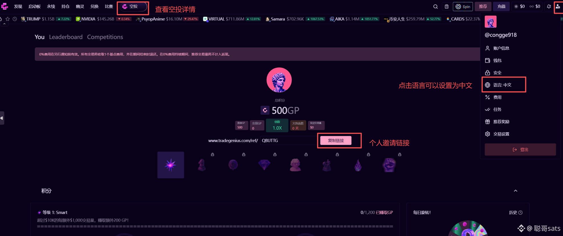 注意:通过邀请链接进入可以直接获得 500 GP 积分