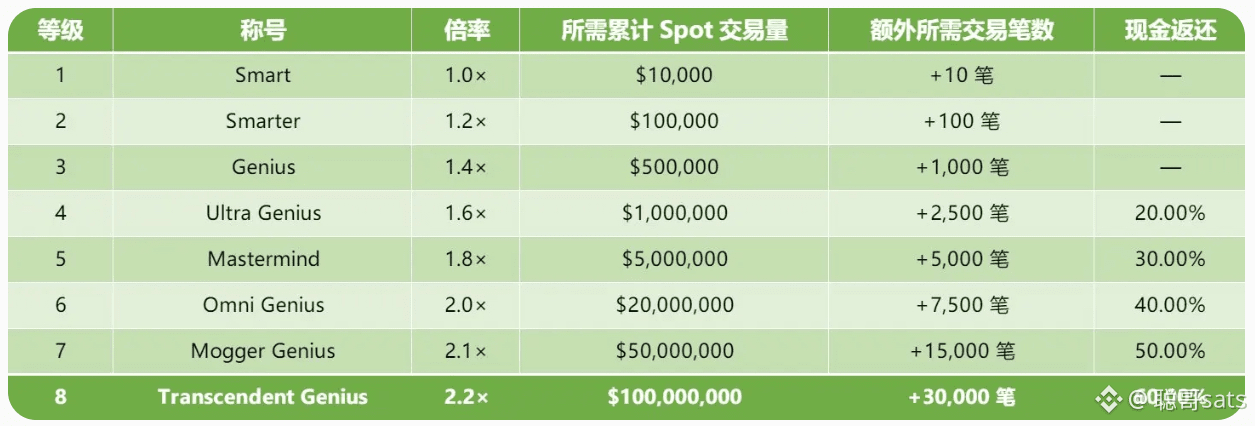 ▶️每 $100 现货交易量和$1000 永续合约交易量可获得 1 GP(乘数前)。