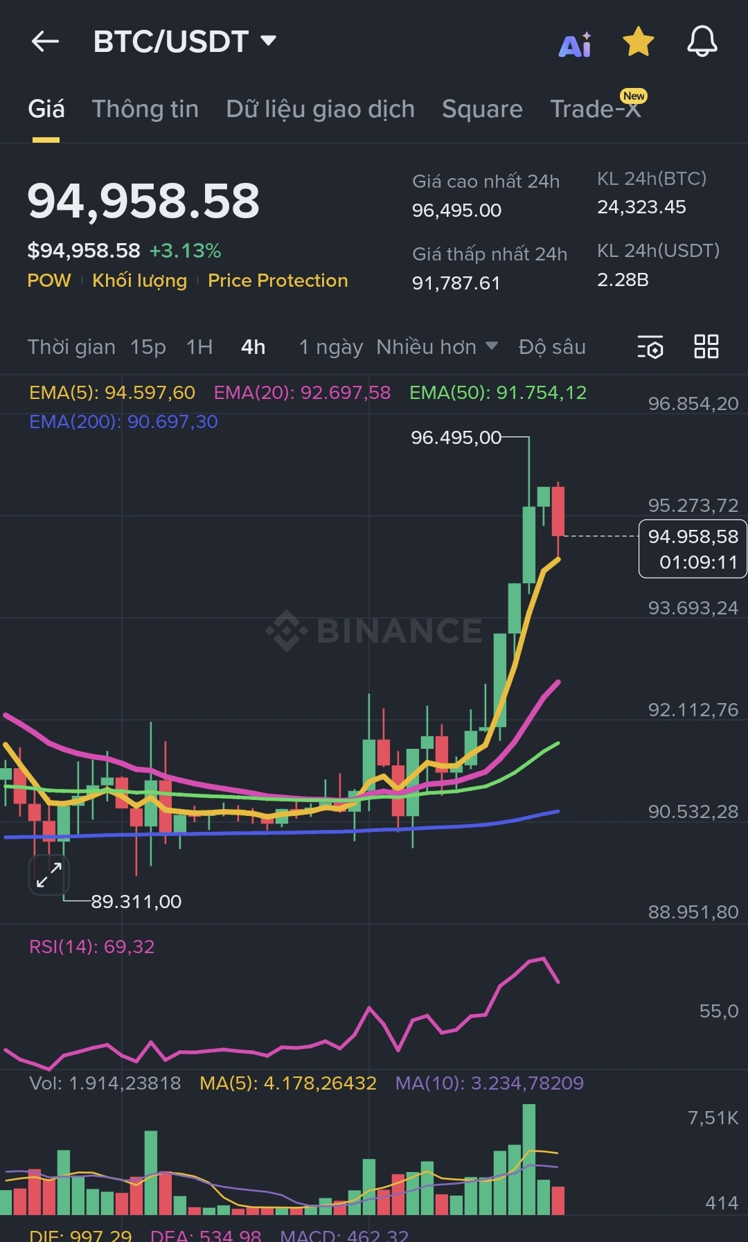 ✅️ Silny krótki skok: BTC przebił kluczowy opór na poziomie 94 500 USD (po trzech wcześniejszych niepowodzeniach), spowodował łańcuch likwidacji krótkich na kwotę ponad 500-590 mln USD. Biedni (bears) zostali "rekt", zmuszeni do zamykania pozycji, co spowodowało szybki wzrost cen.