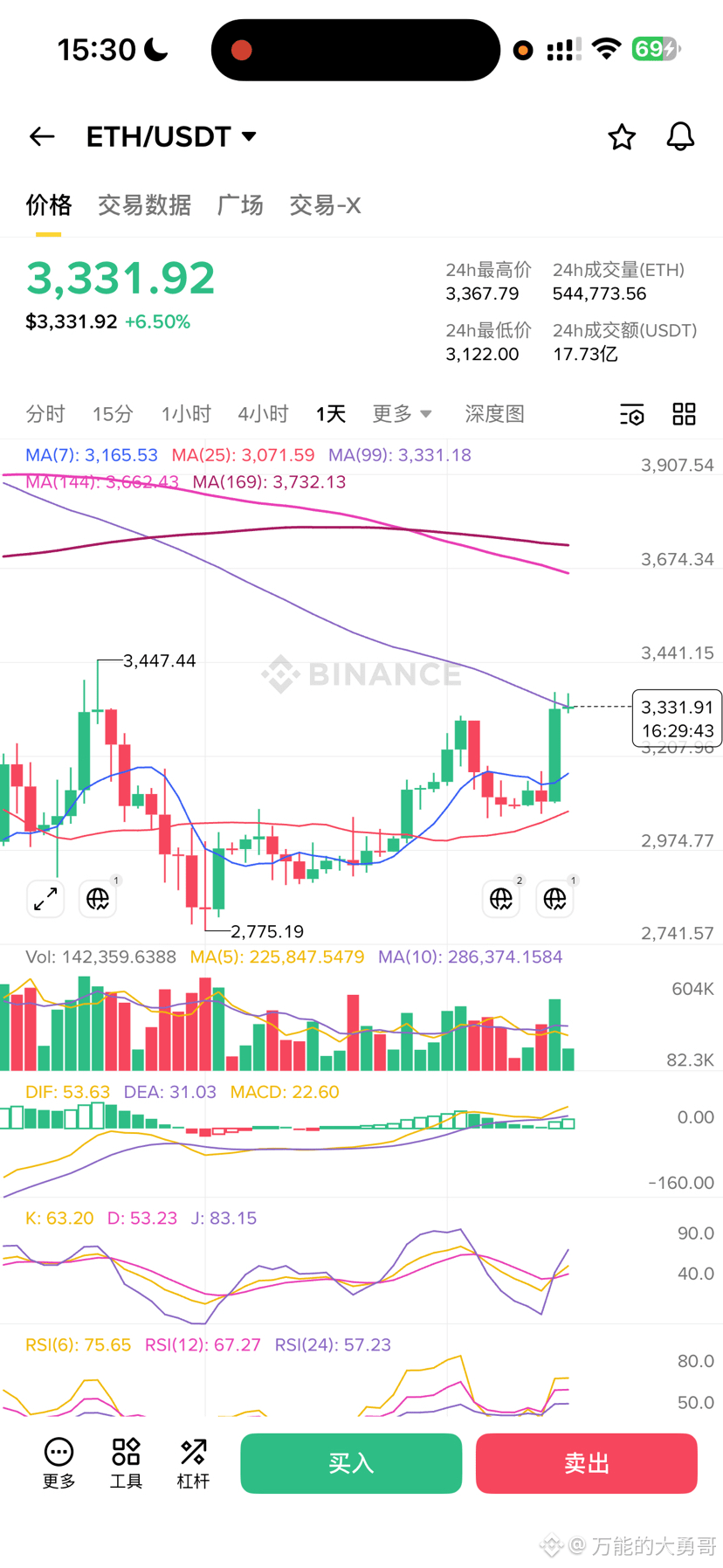 我看了一下私信,满屏都是在问:“大勇哥,以太坊(ETH)冲到3330了,现在进场还来得及吗?会不会踏空啊?”