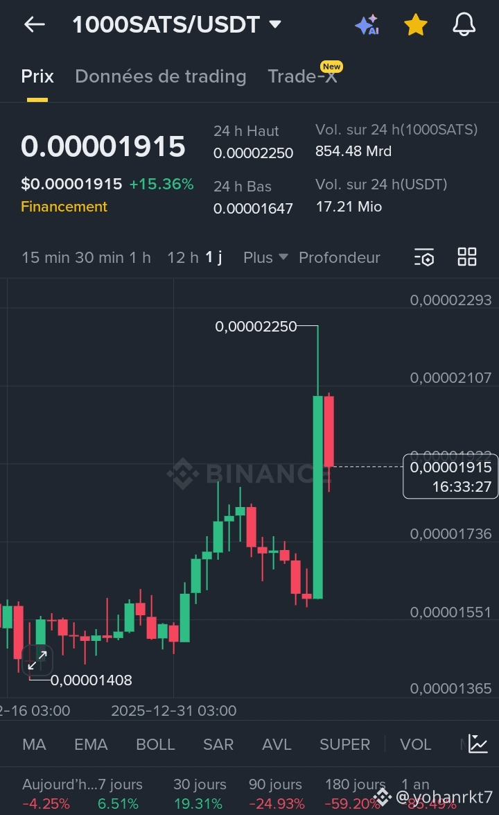 * L'effet "Anniversaire Bitcoin" : Le 3 janvier 2026 marquait le 17e anniversaire du bloc genesis de Bitcoin. Cet événement a historiquement un impact sentimental positif sur les jetons liés à son écosystème, comme 1000SATS.