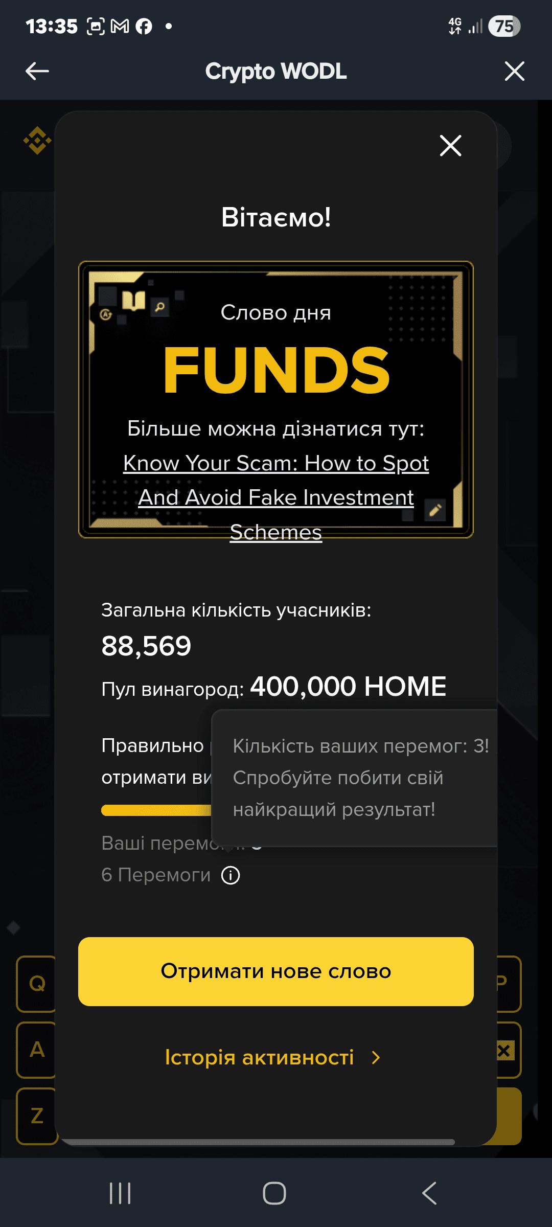 Ochrona: Dziś odgadłem słowo dnia w WODL — FUNDS (Środki). Bo bezpieczeństwo to podstawa! 🔐✅