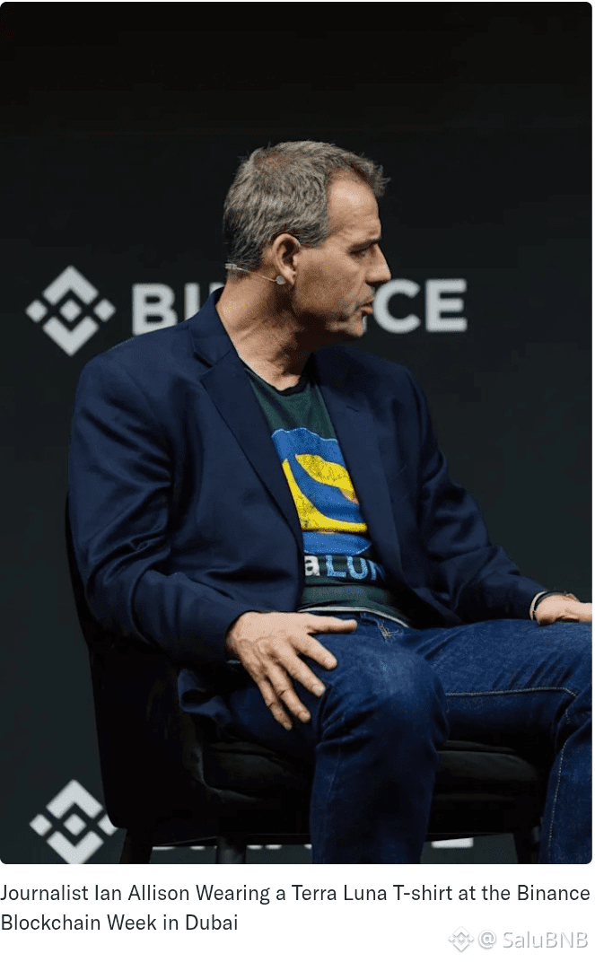 Journalist Ian Allison Wearing a Terra Luna T-shirt at the Binance Blockchain Week in Dubai
