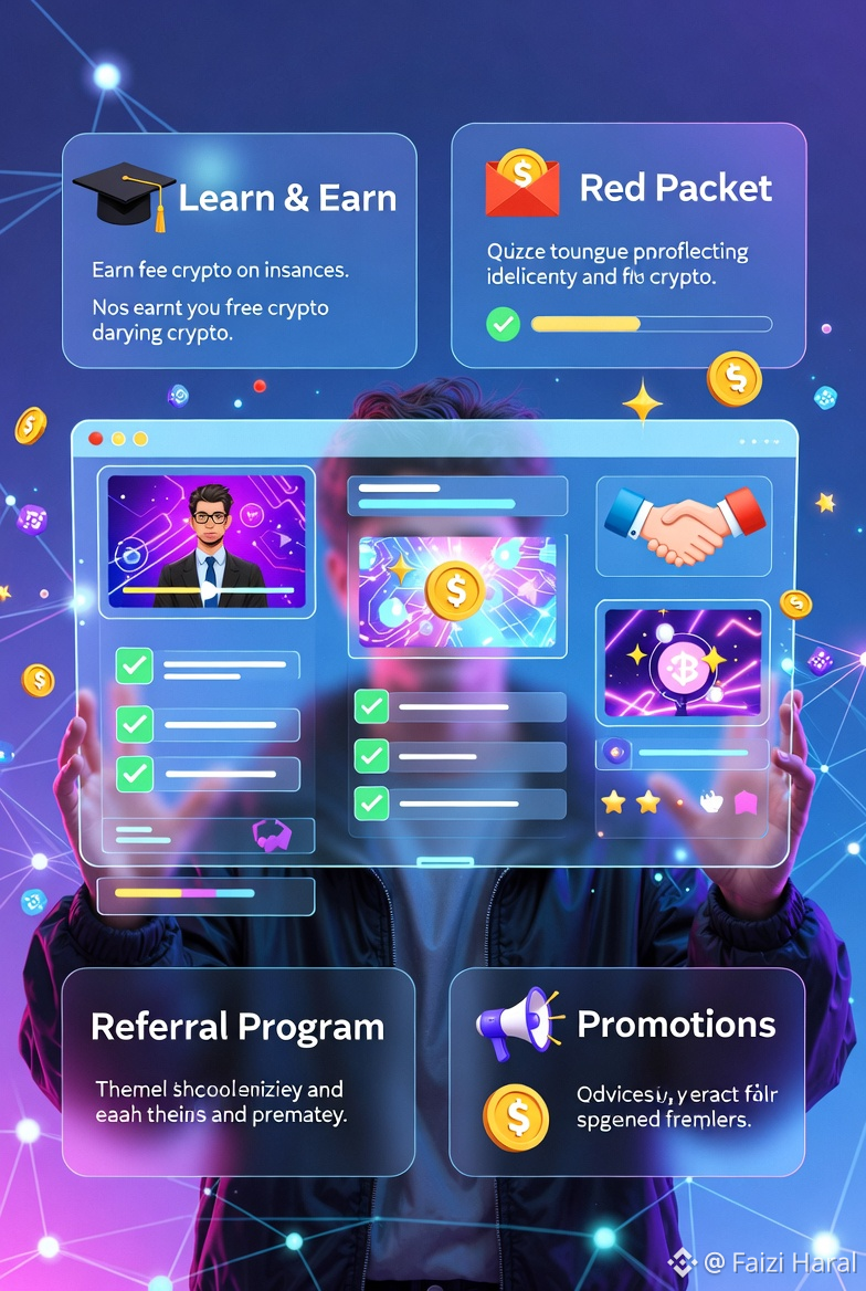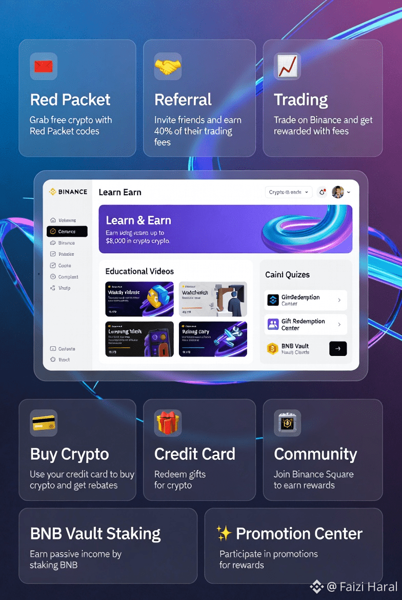 Here are the legitimate ways to earn free crypto on Binance in 2026 without any initial investment (no deposit or purchase of your own money required). These methods are based on current and ongoing Binance features like educational programs, promotions, and referral systems.