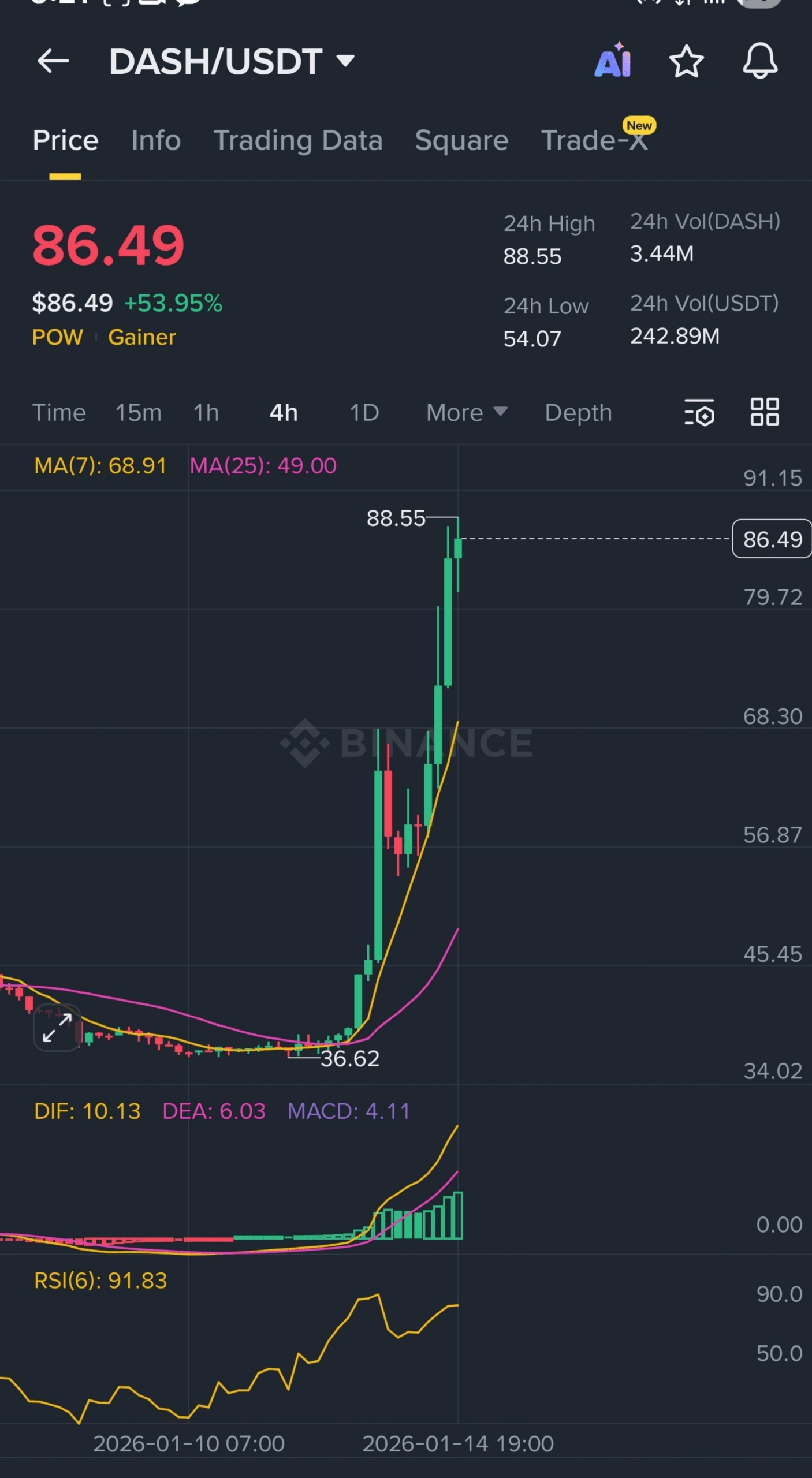 W ciągu ostatnich godzin moneta Dash (DASH) wykazала silny ruch cenowy, który ponownie przywrócił ją na pierwszy plan, z wzrostem przekraczającym 40% w ciągu 24 godzin, napędzany przecięciem czynników podstawowych, technicznych i behawioralnych na rynku.