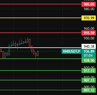 BNB dzisiaj zwróć uwagę na 940, tak długo jak zamknięcie będzie powyżej tej wartości, ta korekta 1-2 godzinowa się kończy, a rynek znów będzie szedł w górę. Zwróć uwagę na poziomy oporu w pobliżu 955-970-985!