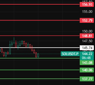 SOL dzisiaj zwróć uwagę na 145, tak długo jak zamknięcie będzie powyżej tej wartości, ta korekta 1-2 godzinowa się kończy, a rynek znów będzie szedł w górę. Zwróć uwagę na poziomy oporu w pobliżu 148-152-156!
