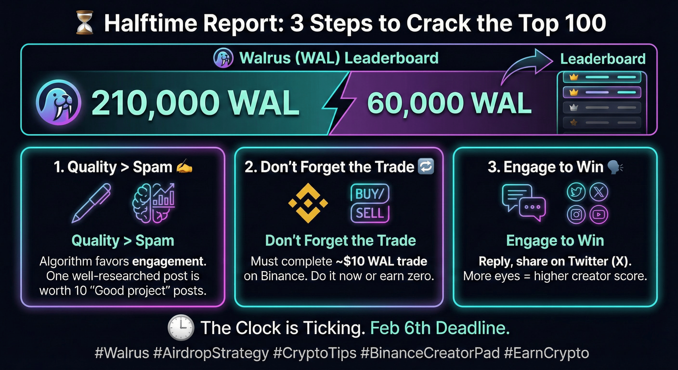 Tytuł: ⏳ Sprawozdanie po połowie: 3 kroki do wejścia w TOP 100 na liście liderów Walrus (WAL)