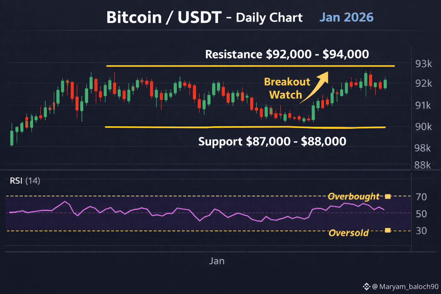 $BTC Bitcoin is trading near the $90,000 zone, showing sideways movement as market participants remain cautious amidst macroeconomic uncertainty and profit-taking. After multiple attempts to break above $92,000–$94,000 resistance, $BTC has faced short-term selling pressure, keeping price within a range.