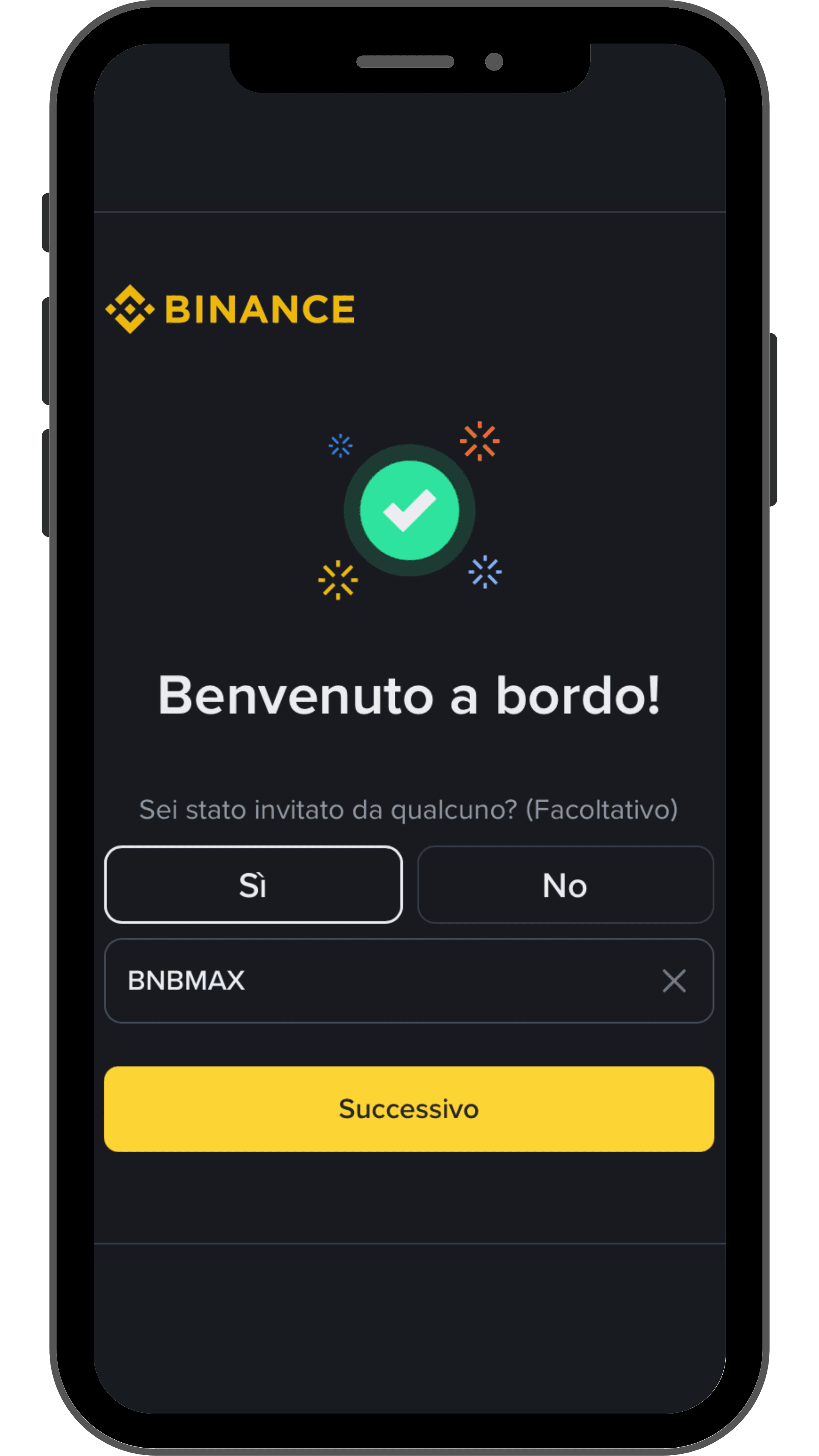 Podczas rejestracji Binance może używać różnych terminów, takich jak ID polecenia lub Kod Zaproszenia. W każdym razie, wpisanie BNBMAX to to, co aktywuje wszystkie korzyści.