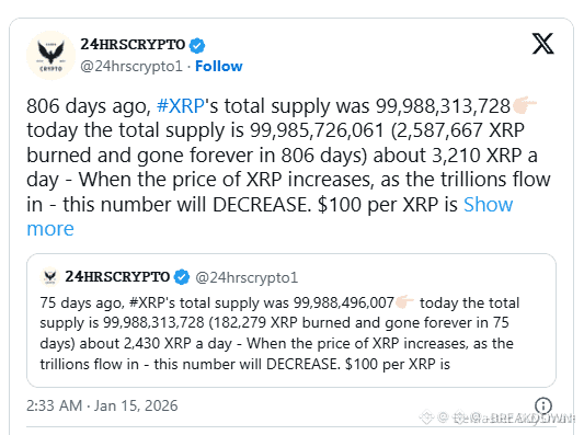 The assertion that the asset will reach $100 remains an opinion, not a guaranteed outcome. However, the argument presented by 𝟸𝙷𝚁𝚂𝙲𝚁𝚈𝙿𝚃𝙾 rests on observable mechanics rather than hype. XRP’s supply continues to shrink, and its utility model demands higher value per token as transaction volumes grow.