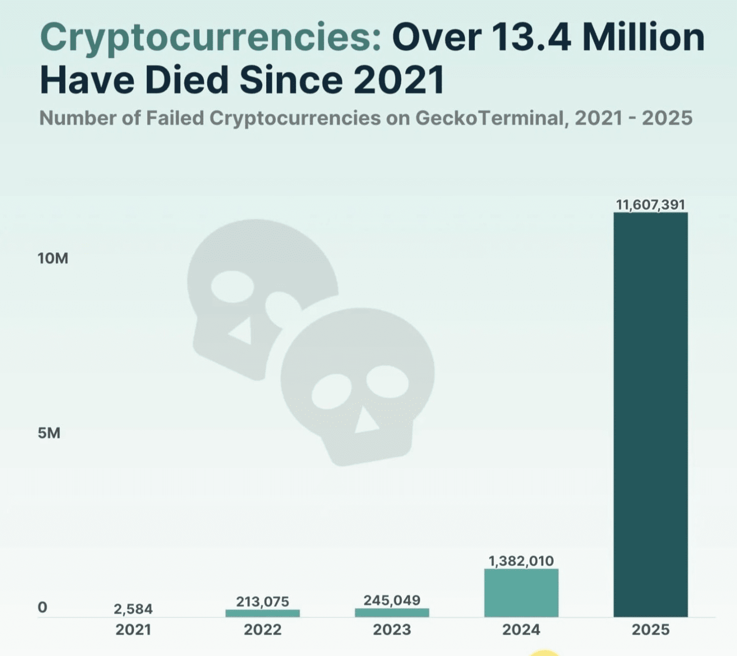 Ponad 11,6 miliona kryptowalut nie powiodło się i zginęło