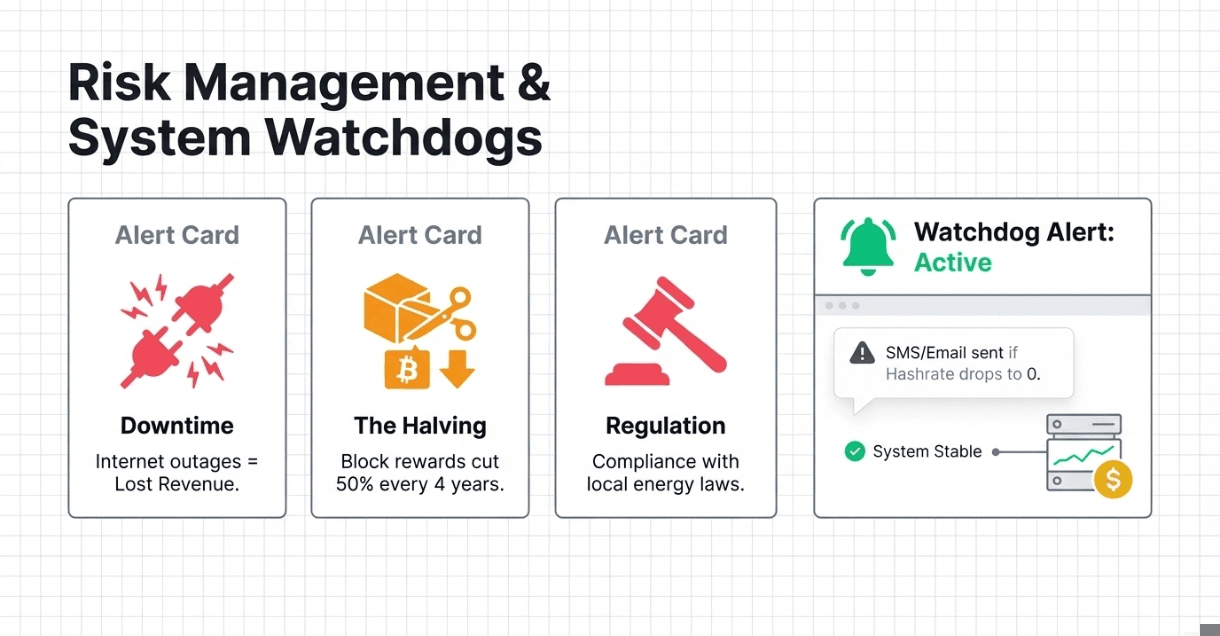 Co 4 lata Bitcoin przechodzi "Halving", obcinając nagrodę za blok o połowę. To drastycznie redukuje przychody z dnia na dzień. Musisz zaplanować swoje koszty energii z tym na uwadze.