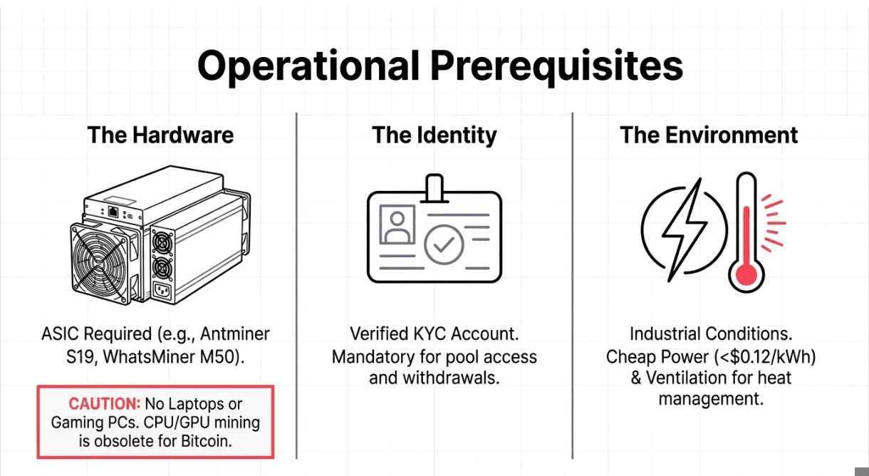 Wydobywanie generuje ciepło i hałas. Upewnij się, że masz lokalizację z tanim prądem (wydobywanie rzadko jest opłacalne przy stawkach mieszkalnych >$0.12/kWh) i odpowiednią wentylację.