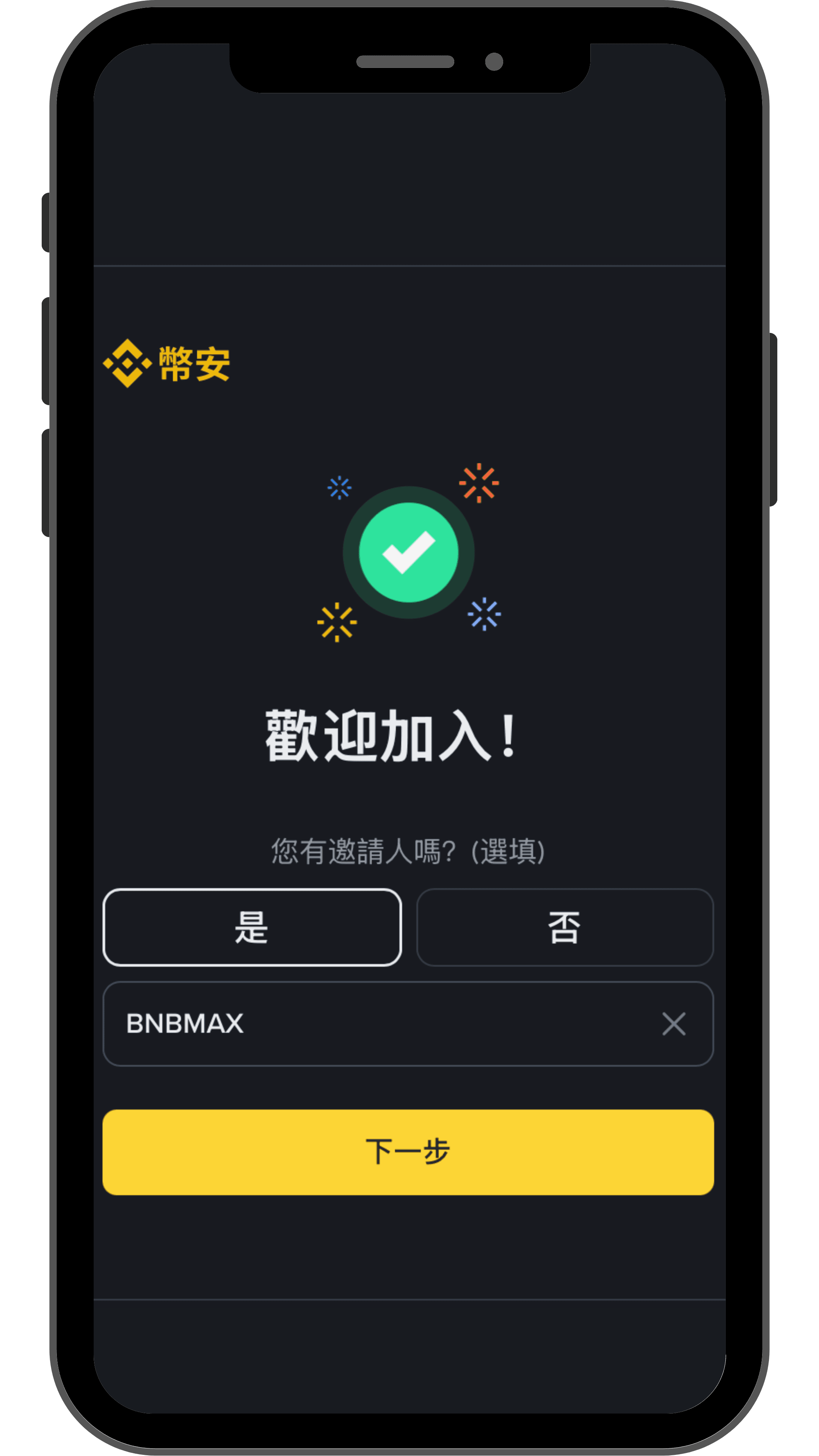 Na przykład w 2026 roku, używany przeze mnie kod polecający to BNBMAX. Wprowadzając ten kod podczas rejestracji, konto automatycznie łączy się z programem poleceń Binance i aktywuje zniżki do 45% na opłaty transakcyjne (najlepsze wyniki daje płatność BNB). Cały proces nie wymaga dodatkowych ustawień.