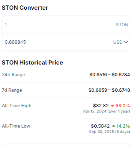 Ostatnia historia cenowa STON opowiada historię bardziej spójną z dojrzałością niż maniakalnością. Dane roczne pokazują powtarzające się odbicia od krótkich korekt i coraz silniejszą strukturę handlową — wzór typowo związany z rosnącym organicznym popytem. Kluczowo, wzrosty STON śledzą konkretne kamienie milowe platformy (nowe notowania pul, integracje z Omniston, wyższa aktywność on-chain) zamiast czysto sentymentu rynkowego.