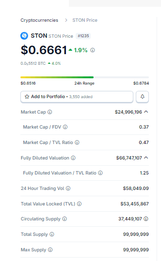 Efekty sieciowe. W miarę jak coraz więcej aktywności DeFi przepływa przez STON.fi i Omniston, STON staje się naturalnym medium do koordynacji — gromadzenie opłat, zachęty LP i uczestnictwo w zarządzaniu mogą stworzyć wzmacniającą popyt.